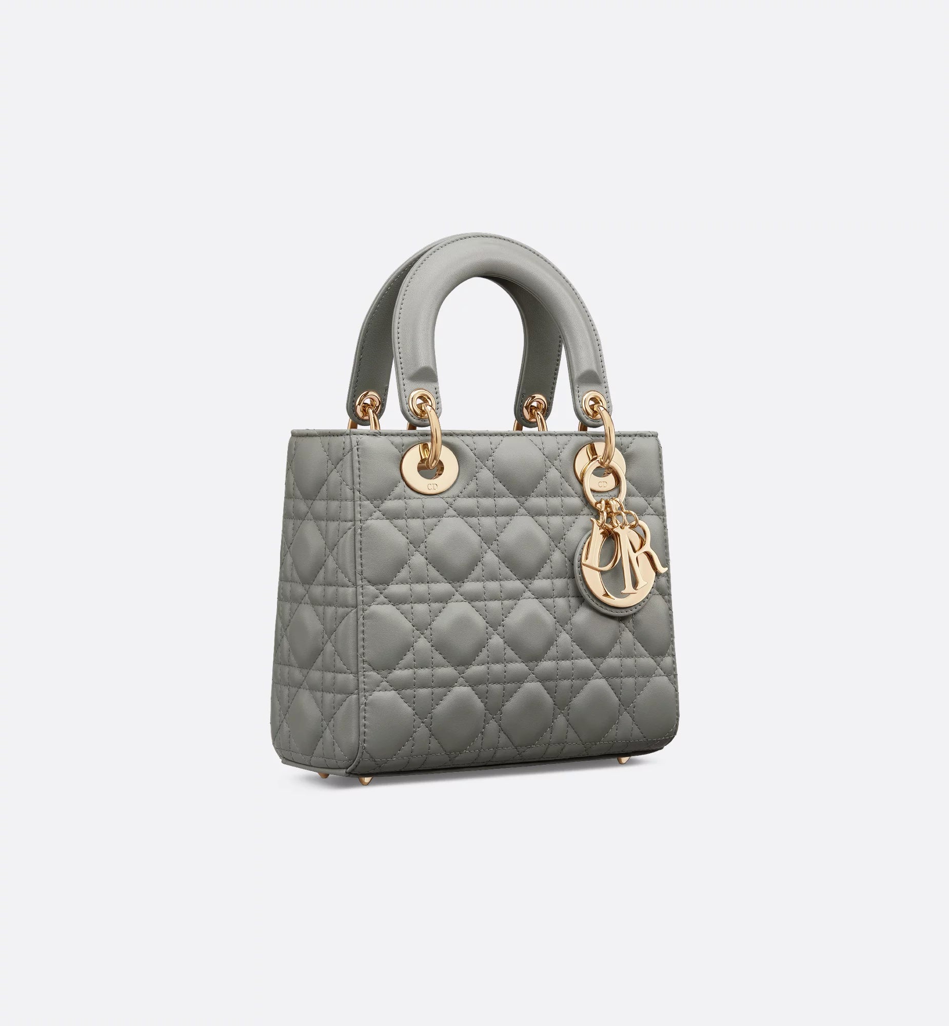 So gut wie neu! Gebrauchte mittelgroße Lady Dior, grau, aus Lammleder.